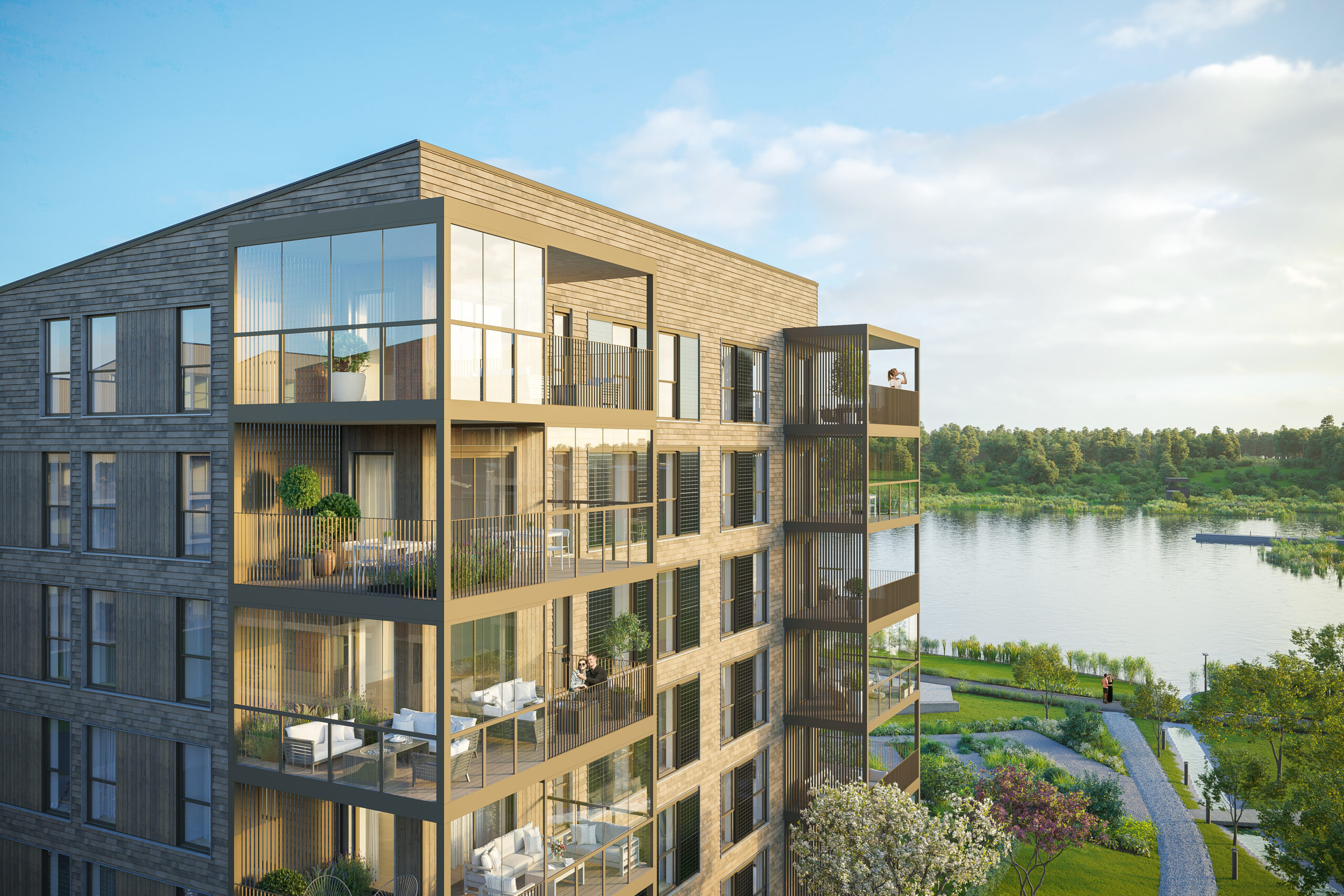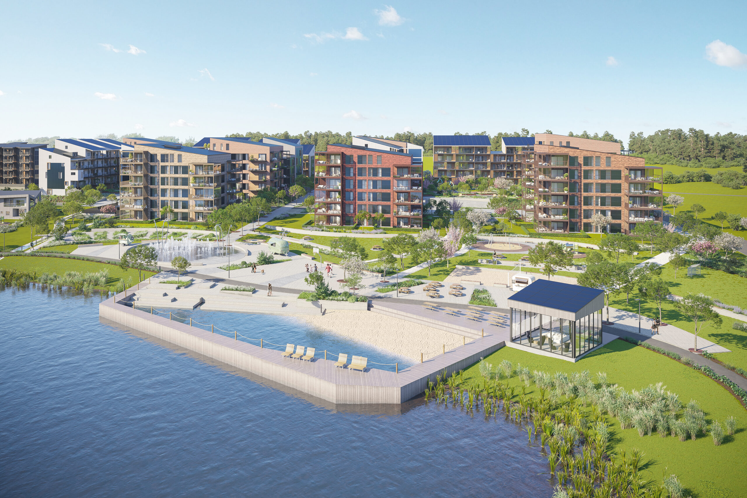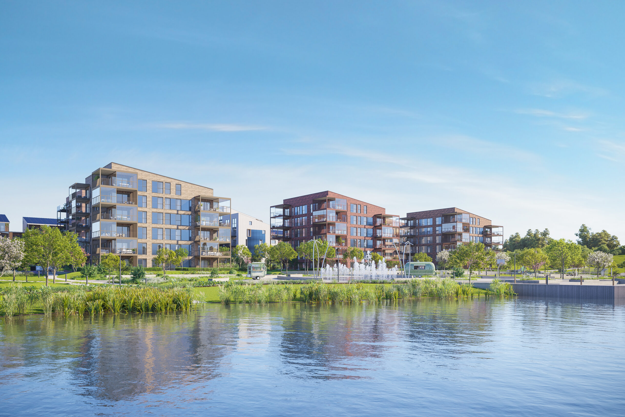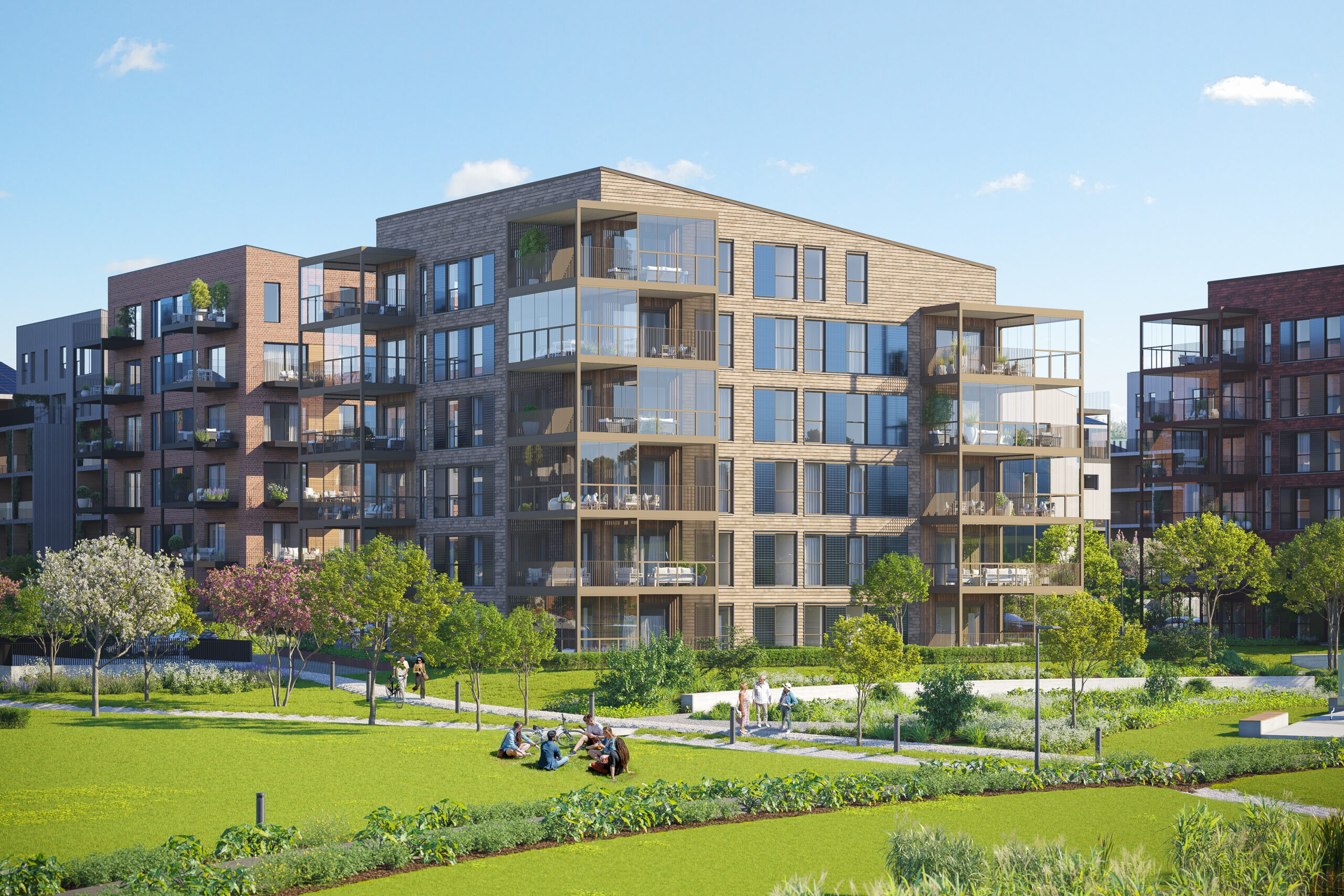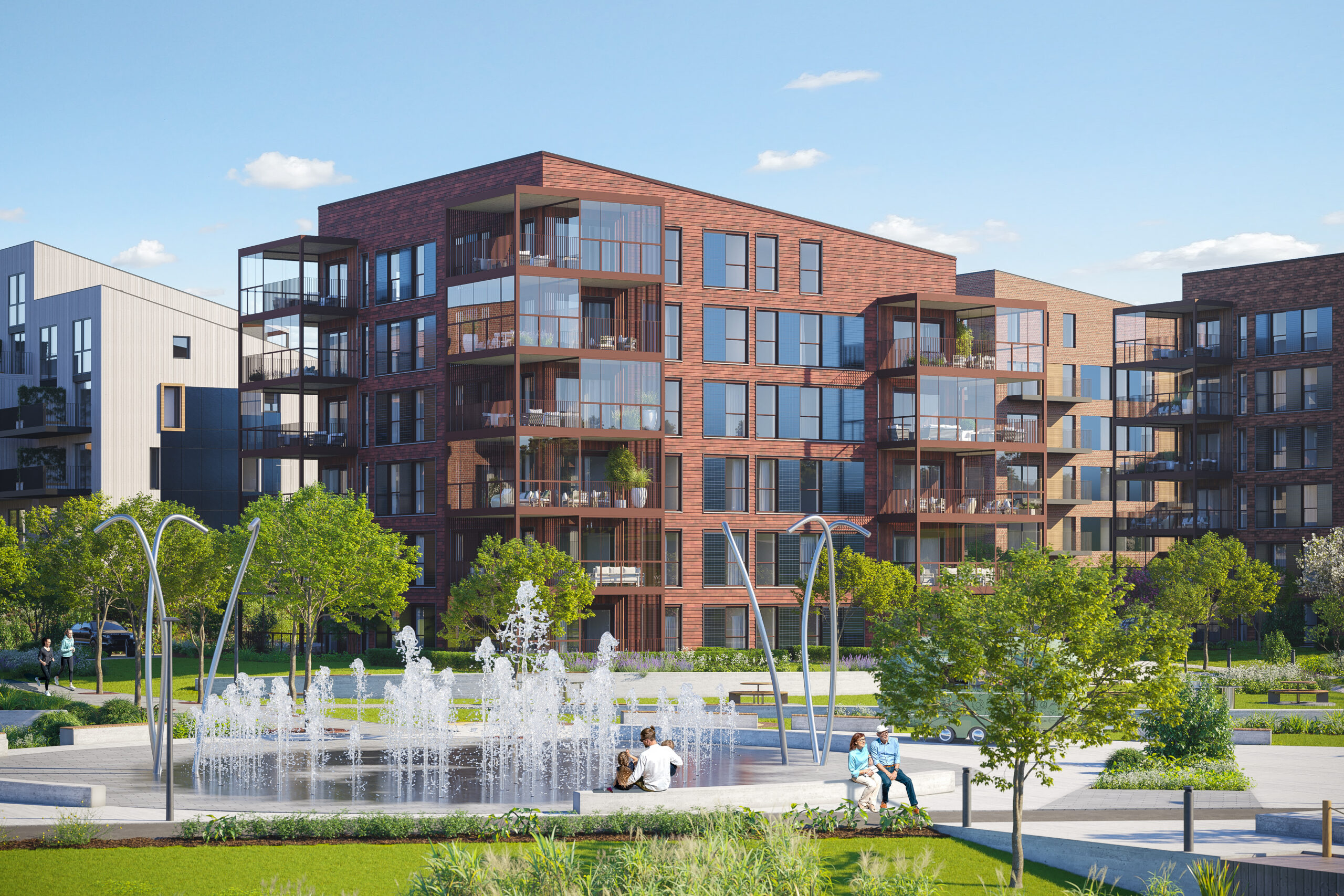 Ved siden av å vektlegge miljøstandarder, er målet her å utforme en ideell urban erstatning for eneboligen. Ved å bygge i høyden, åpner man for større grøntarealer rundt boligene. Disse gir beboerne rekreasjon, men styrker også overvannshåndteringen i et stadig våtere klima.